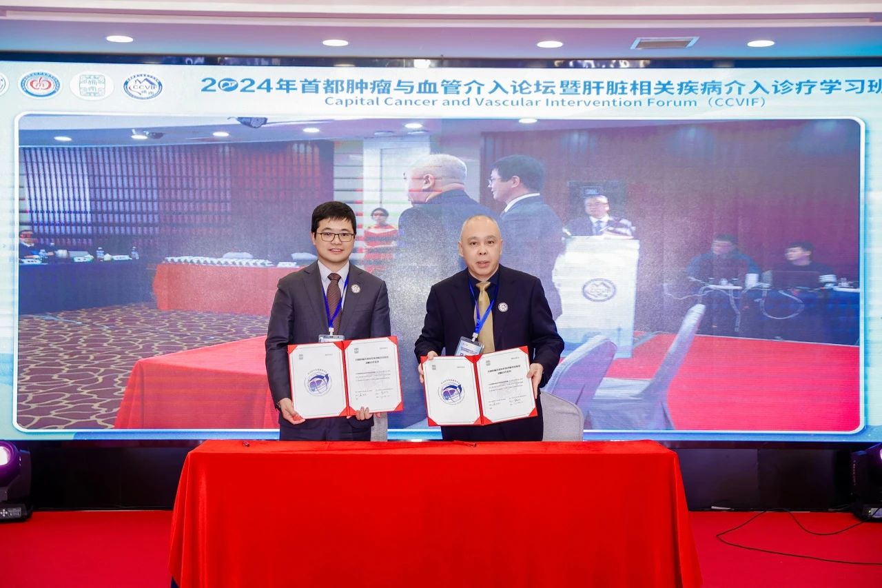 2024年12月14日上午,雙方共建先進(jìn)實(shí)驗(yàn)室簽約儀式在“2024首都腫瘤與血管介入論壇暨肝臟相關(guān)疾病介入診療學(xué)習(xí)班”開幕式中隆重舉行,佑安醫(yī)院院長馬迎民與海杰亞總裁羅富良共同簽署合作協(xié)議。北京市衛(wèi)生健康委員會(huì)一級(jí)巡視員潘蘇彥,北京市科學(xué)技術(shù)委員會(huì)中關(guān)村科技園區(qū)管理委員會(huì)副主任龔維冪,中國科學(xué)院院士、東南大學(xué)附屬中大醫(yī)院院長及介入中心主任滕皋軍,北京市醫(yī)院管理中心科研學(xué)科教育處處長李曉峰,北京大學(xué)第一醫(yī)院介入血管外科教授鄒英華,中國醫(yī)學(xué)科學(xué)院腫瘤醫(yī)院介入治療科主任李肖,首都醫(yī)科大學(xué)附屬北京佑安醫(yī)院院長馬迎民,首都醫(yī)科大學(xué)附屬北京佑安醫(yī)院副院長肝病與腫瘤介入治療中心主任張永宏,首都醫(yī)科大學(xué)附屬北京佑安醫(yī)院肝病與腫瘤介入治療中心學(xué)科帶頭人鄭加生,首都醫(yī)科大學(xué)附屬北京佑安醫(yī)院肝病與腫瘤介入治療中心教授李建軍、袁春旺,海杰亞(北京)醫(yī)療器械有限公司總裁羅富良等眾多領(lǐng)導(dǎo)與專家,以及腫瘤與血管介入治療領(lǐng)域的數(shù)百位學(xué)者和產(chǎn)學(xué)研醫(yī)人士,共同見證了此次活動(dòng)。